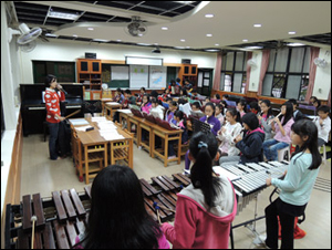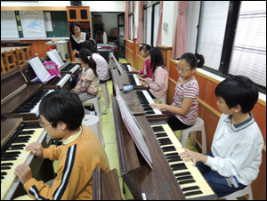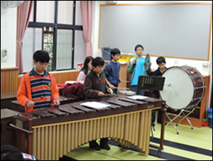 We practiced with the band together. The members of the band became our assistant teacher, and experienced how to play the piano and the terpodion piano.